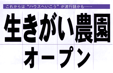 ▼″生きがい″という言葉を耳にしたとき、 みなさんはどんなことを思い浮かべますか? 趣味、仕事、家族、友達とのふれあい、地 域でのさまざまな活動など、まさしく千差万別 の考えがあると思います。町では「生きがい づくりを応援するために、最上町に一番ふさ わしい行政施策」として、花や野菜づくりなど の園芸活動をテーマにした″新しい試み″ をスタートさせました。 ▼その試みとは、この春に老人保健施設・や すらぎの近辺に建設された、四棟の園芸ハウ ス「生きがい農園」による活動です。国道から 少し離れているために、その外観を直接目に ふれる機会が少なく、まだご存じでない方も多 いのではないかと思います。そこで今月の特 集では、生きがい農園の概要やこれからの計 画などについてご紹介いたします。 |