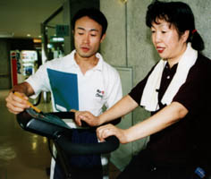 能力に応じて無理のない方法で運営されています。 また、体力づくりやパワーアップ、シエイプアップ、リハビリなどの目的別に、六つのトレーニングコースが設定されています。 利用の時間帯は、午後一時から九時まで。ただし、土曜日は午後一時から五時までの利用となります。毎週月曜日と祝祭日、日曜日の夜(午後5時以降)は休館です。指導には、厚生省認定の健康運動指導士の資格を持つ指導員(社会福祉協議会の職員)が、専属で当たっています。 利用登録者は五百十二人